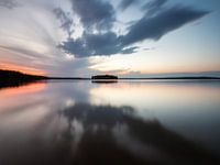 Een nieuwe dag ontwaakt, rustig, kalm, met zijn betoverende kleuren. Het beeld straalt rust en ruimte uit, het lijkt alsof de wereld maar langzaam ontwaakt uit zijn sluimer. Het kalme water weerspiegelt de wolken, een zachte dageraad aan de horizon.