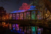 Koop de foto De kleurrijk verlichte Hortus Botanicus van Amsterdam van Jeroen de Jongh Fotografie als print op canvas, aluminium dibond, (ingelijste) fotoprint, behang en ArtFrame. Voor jou op maat geprint in Fine-Art kwaliteit.