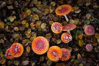 Kleurrijke paddestoelen, gefotografeerd van boven waardoor de kleuren mooi opvalt. De herfst is altijd een mooi seizoen om te fotograferen.