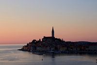 Deze foto van de stad Rovinj in Kroatië is genomen vanaf de beste locatie in Rovinj, waar u kunt genieten van het uitzicht op deze prachtige stad en de zonsondergangedities.