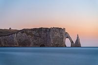 De rotsen van Etretat, ook wel de olifant genoemd. Een lange sluitertijd foto tijdens het blauwe uurtje