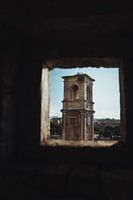 Door de dikke muren van het Oude Fort op de Oude Vesting in Corfu Stad heb ik de klokkentoren gefotografeerd.