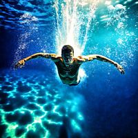 Het schilderij vangt een moment van rauwe energie en gratie onder het wateroppervlak. Als kunstenaar streefde ik ernaar de vloeibaarheid en kracht van de menselijke vorm in beweging over te brengen en deze naadloos te laten versmelten met de natuurlijke schoonheid van de onderwaterwereld. De zwemmer, die centraal staat in de compositie,…