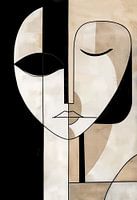 Minimalistisch portret van een vrouw in de kleuren zwart, wit, beige en bruin. Mooi zwart lijnenspel die het gezicht duiden. Passend bij diverse stijlen en trends, zoals abstract en modern abstract. Artist: Bianca ter Riet.