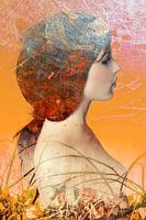 Zoals bij veel van mijn werken heb ik gebruik gemaakt van een etalagepop. Vervolgens heb ik eigen foto's gebruikt om tot dit eindresultaat te komen. Voor mij maakt de kleur oranje het tot een krachtig portret. Het portret zal goed tot zijn recht komen in een modern interieur.