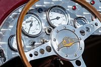 Op de foto is ook een deel van het dashboard zichtbaar, met de karakteristieke kilometer- en toerenteller, die het klassieke karakter van deze autoklassieker benadrukken. Iedere lijn, elke knop en…