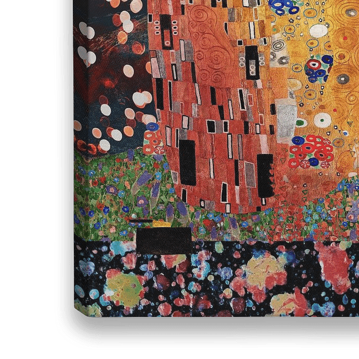 Liever een horizontale uitsnede van dit werk? Bekijk ook eens dit kunstwerk: https://www.werkaandemuur.nl/nl/werk/De-kus-bij-avondlicht-naar-het-werk-van-Gustav-Klimt-Jugendstil---digitale-collage/1030240