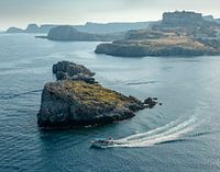 De kust bij Lindos baai, Lindos, Rhodos, Rhodes, Griekenland