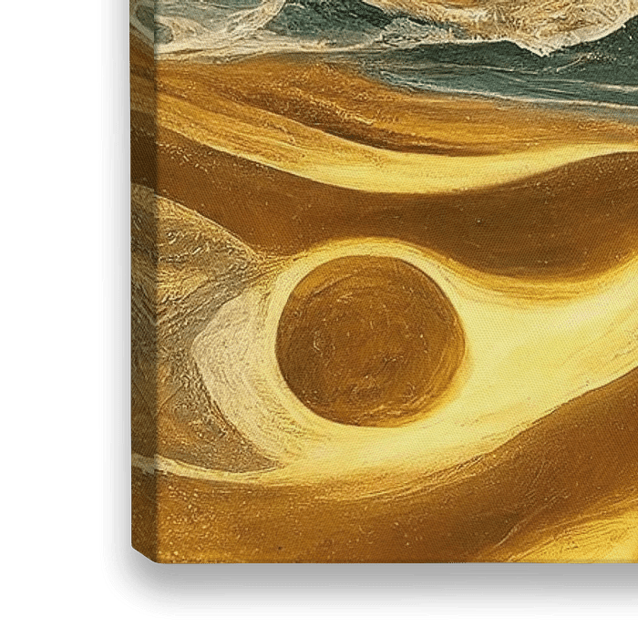 Een kleurrijk digitaal schilderij van de kust in te stijl van Gustav Klimt. Dit werk is geinspireerd door de vormen en het kleurenpallet van "De Kus". Het werk geeft een warme en klassieke uitstraling van uw interieur!