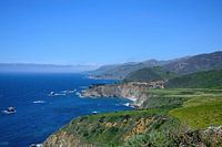 De kustlijn bij Hurricane Point, een beroemd, winderig uitzichtpunt langs Highway 1 in Big Sur, bekend om zijn adembenemende panoramische uitzichten op de Stille Oceaan, de ruige kustlijn en de iconische Bixby Creek Bridge.