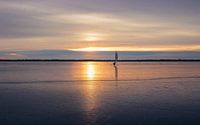 Een laatste ijszeiler bij een winters zonsondergang aan het Zuidlaardermeer Kropswolde. Grote delen van het meer en de naastliggende polders worden beheerd door de stichting Het Groninger Landschap. Het meer en omliggend gebied, waaronder de Kropswolderbuitenpolder, de Leinewijk en Onnerpolder zijn prachtige natuurgebieden.