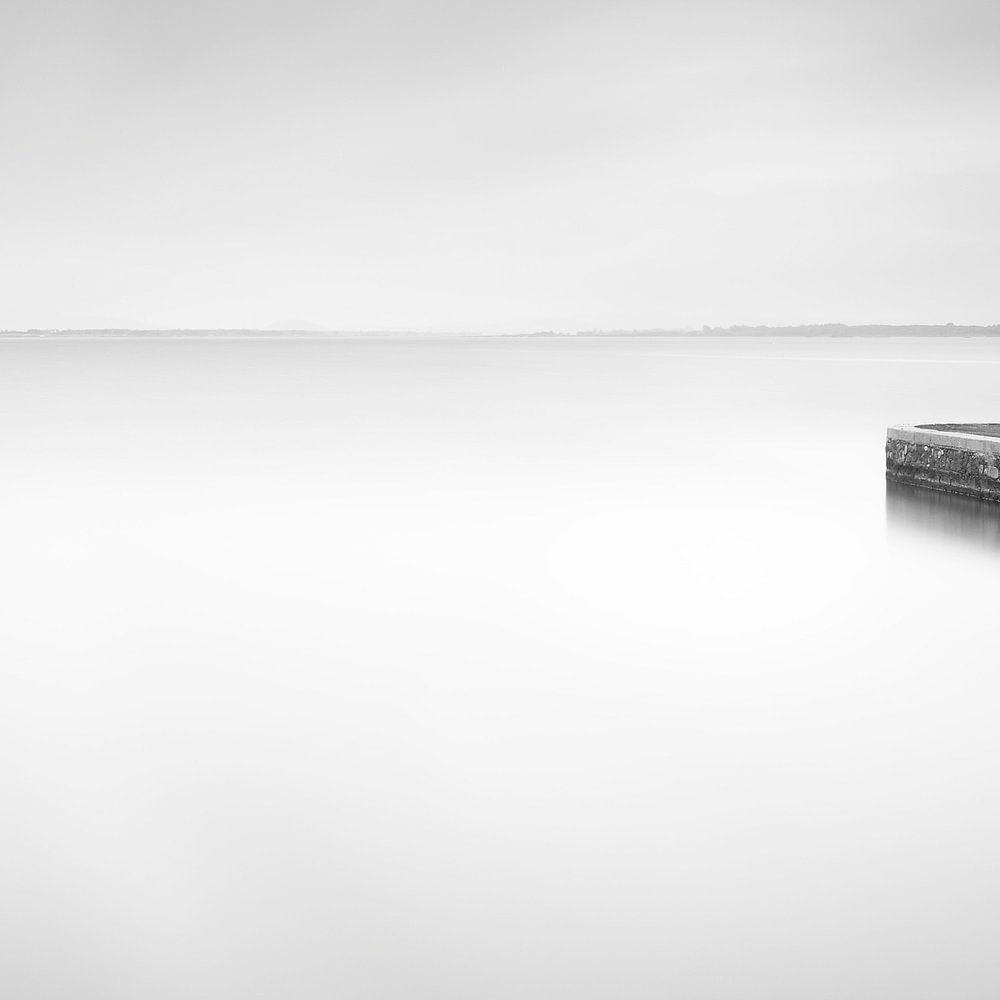 Zwart-wit long exposure foto van een lantaarnpaal. Lagune van Orbetello. Toscane, Italië