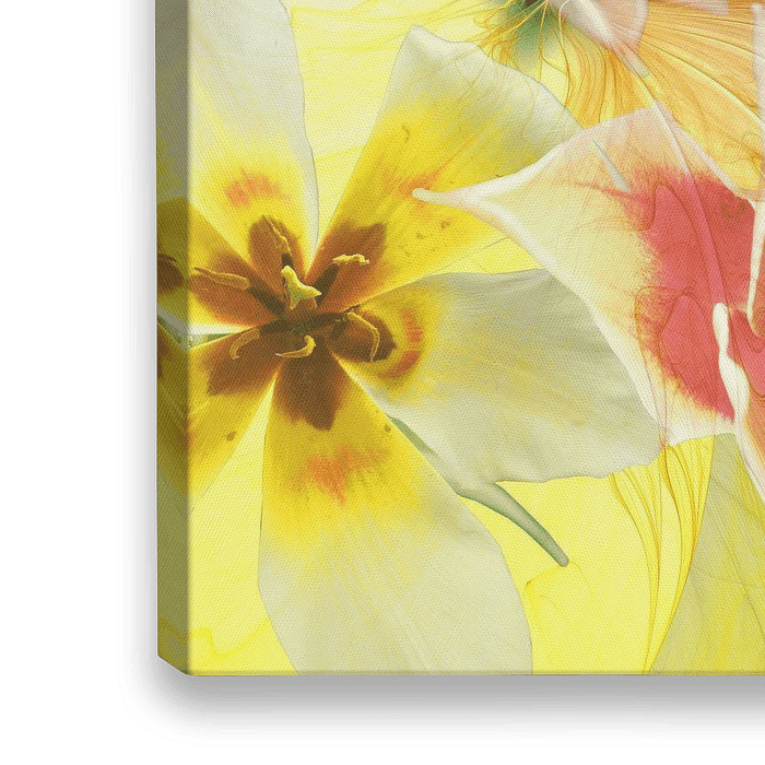 Een combinatie van digitale abstracte kunst en digitaal bewerkte gefotografeerde tulpen
