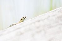 Een prachtige hagedis die in Nederland voorkomt is de levendbarende hagedis. Op deze foto zit de hagedis op een lichte omgevallen stam. Net zijn bekje open maakt de foto erg leuk.