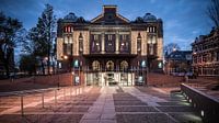 Stadsschouwburg Haarlem verlicht tijdens het blauwe uur