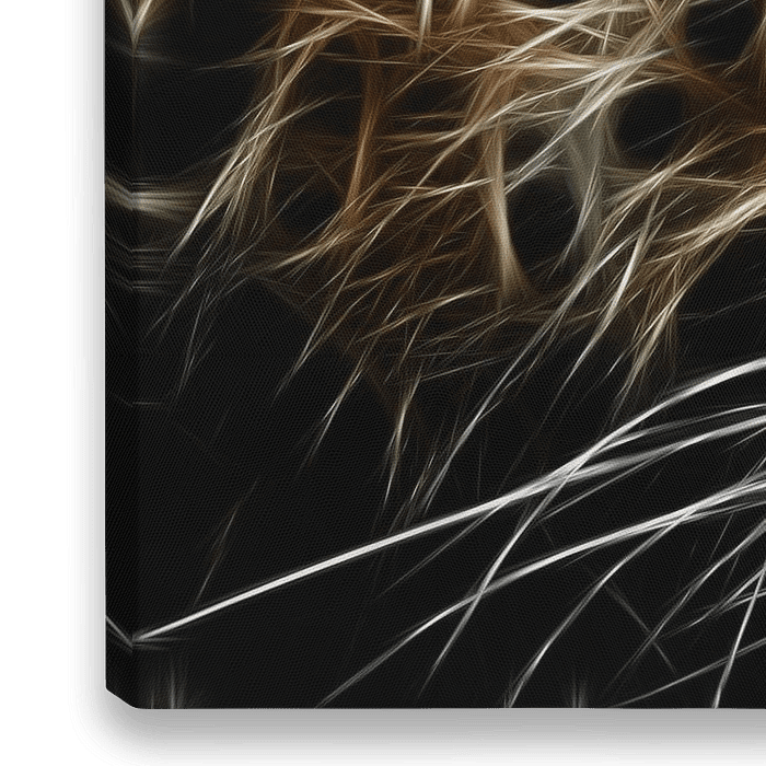 De luipaard is een prachtig portret van oplichtende strepen die 3d door elkaar heen lopen en samen een luipaard vormen. dit werk is van hoge kwaliteit en is nergens anders verkrijgbaar.
