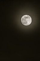 Een foto van de maan genomen tijdens de avond. De foto is omgezet naar zwart wit en daarna wat kleurverloop toegevoegd. De maan schoonheid in eenvoud!