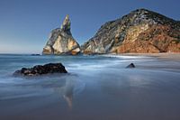 Deze sfeervolle landschapsfoto is gemaakt tijdens een heldere nacht op Praia da Ursa, een van de meest spectaculaire stranden van Portugal. De focus ligt op de iconische, torenhoge rots die dramatisch uit de Atlantische Oceaan oprijst in het laatste licht van de dag. De kalme lange belichting laat het water zijdeachtig lijken en versterkt de mystieke sfeer van dit wilde stuk kust in de buurt van Sintra. Praia da Ursa is een geheime tip onder natuur- en fotografieliefhebbers - afgelegen, onbedorven en van unieke schoonheid. Deze foto combineert rust, kracht en de ongetemde magie van de natuur op een bijzondere manier. Het is ideaal als muurschildering voor woon- of werkruimtes en brengt de essentie van Portugese natuurwonderen direct in je huis.