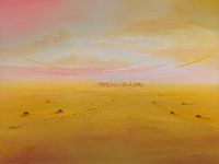 Dit schilderij legt op indrukwekkende wijze de menselijke behoefte aan aankomst en saamhorigheid vast. Het toont een vlak, ruw pad midden in een dor woestijnlandschap. De weinige stenen langs de weg geven het gevoel dat de wandelaar een lange en zware reis achter de rug heeft. De scène creëert een verlatenheid en eenzaamheid die de ontberingen van de reis benadrukken.