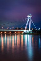 Brug van de Slowaakse Nationale Opstand in Bratislava bij nacht