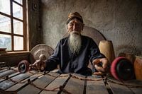 De reeds overleden Ki Suripto (meester in de gamelan) in zijn simpele huis in Salatiga, Midden Java, Indonesie. Foto genomen in 2018. Een zwart wit opname.