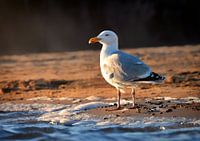 Fotograferen tijdens zonsopgang geeft altijd een tikje magie aan je werk. Zo ook op deze foto die werd genomen tijdens een weekendje Zeeland in Nederland. De meeuw en het strand zijn gehuld in de warme kleur van de opkomende zon terwijl de zee langzaam blauw kleurt.