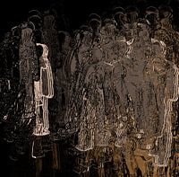 Abstracte interpretatie van groep mensen samen gemaakt van verschillende lagen op een zwarte achtergrond