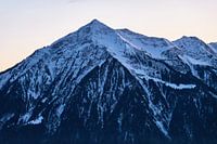 Het laatste licht van de dag op een koude winterdag verleent de Niesen, bezienswaardigheid van het Berner Oberland, een tijdloze en majestueuze uitstraling.