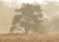 De ochtend kleurt goud, de nevel zorgt voor een gouden gloed over de bomen.