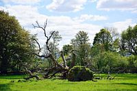 Genietend van een aangename autorit in het Killarney National Park in de buurt van de stad Killarney in Ierland. Deze omgevallen boom trok zeker onze aandacht. We hebben geen idee hoe hij gevallen is, maar we vermoeden een recente storm.
