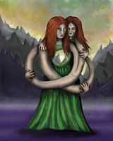 De omhelzing digitaal schilderij van Bianca Wisseloo