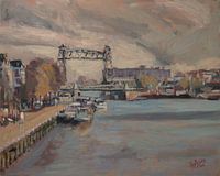 Prachtig hedendaags Rotterdam met de Eiffel-achtige Hef. Kwaliteitsreproducties hier op Werk aan de Muur. Origineel schilderij is te koop: www.briex.eu