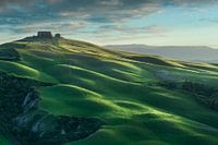 Het golvende landschap, met zijn zachte rondingen en levendige groene velden, belichaamt de tijdloze schoonheid van het Toscaanse…