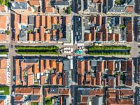 Elburg oude ommuurde stad gezien van bovenaf tijdens een mooie zomerdag in Gelderland, Nederland. Elburg was vroeger een vissersstadje, maar is nu meer gericht op toerisme vanwege de ligging nabij het Veluwemeer en de Veluwe als populaire toeristische bestemmingen.