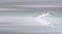 Een lange en enorme golf, Australië richting Byron Bay, in de verte alleen in deze oceaan de natuur tartend.