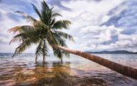 Deze schommel bevestigt aan het eind van een palmboom die vlak boven het water groeit is de perefecte plek