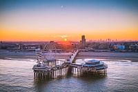 Drone foto van de zonsopkomst de Pier van Scheveningen