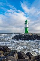Koop de foto De pier aan de Baltische kust in Warnemünde op een stormachtige dag. van Rico Ködder op canvas, aluminium dibond, (ingelijste) fotoprint, behang en ArtFrame, op maat geprint in Fine-Art kwaliteit.