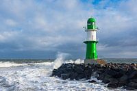 Koop de foto De pier aan de Baltische kust in Warnemünde op een stormachtige dag. van Rico Ködder op canvas, aluminium dibond, (ingelijste) fotoprint, behang en ArtFrame, op maat geprint in Fine-Art kwaliteit.