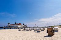 De pier en strandstoelen in Ahlbeck op het eiland Usedom.
