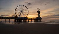Het blijft een prachtig gezicht. De pier van Scheveningen (Nederland) met het fotogenieke reuzenrad. Deze foto is bij zonsondergang gemaakt, waarbij de silhouetten goed zichtbaar zijn tegen de fijn gekleurde lucht.