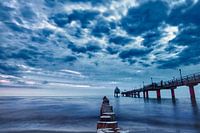 De pier van Zingst, die zich uitstrekt in zee en aan het eind een duikgondel heeft. De plaats aan de Oostzee is een populaire toeristische trekpleister