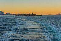 De poolcirkel passeren tijdens een cruise met Hurtigruten bij zonsopgang in de winter in Noorwegen