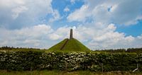 Een panorama beeld van de pyramide van Austerlitz. Op de achtergrond een mooie blauwe lucht met wat wolken erbij waardoor er veel diepte in de foto zit. Ik heb dit beeld gemaakt met een ultra groothoek.