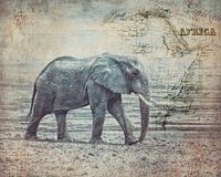 eenzame olifant lopen door de savanne-illustratie gemengde mediastijl