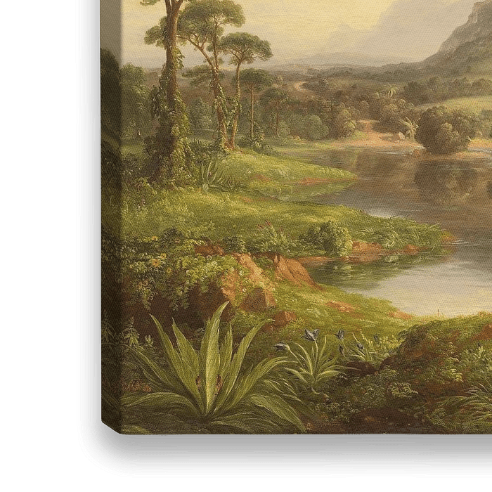 Cole geeft commentaar op het landschap en de ambities van de jeugd: "Het landschap van het schilderij - de heldere stroom, de hoge bomen, de torenhoge bergen, de onbegrensde afstand en de transparante atmosfeer - geven de romantische schoonheid weer van de jeugdige verbeelding, wanneer de geest het gewone en gewone verheft tot het prachtige, voordat de ervaring leert wat de werkelijkheid is."