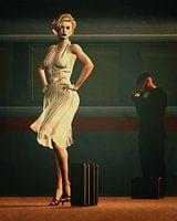 Dit zou een scène uit een film uit de jaren 40 of 50 kunnen zijn. Reizigers die op een trein wachten is een dagelijks tafereel in elk station in de wereld. De man steekt geduldig een sigaret op terwijl hij wacht, maar de vrouw is ongeduldig Zij is duidelijk altijd in beweging, let op haar linkervoet die ongeduldig een stap vooruit…
