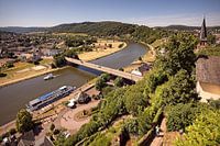 Uitzicht vanaf de Burcht van Saarburg over de rivier de Saar (Rijnland-Palts, Duitsland).