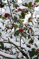 Eindelijk winter met veel sneeuw en vorst. De rode bessen van de hulst komen nu bijzonder goed uit