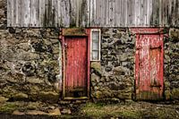 Rode deuren op het eiland Mykines, Faeröer, Denemarken